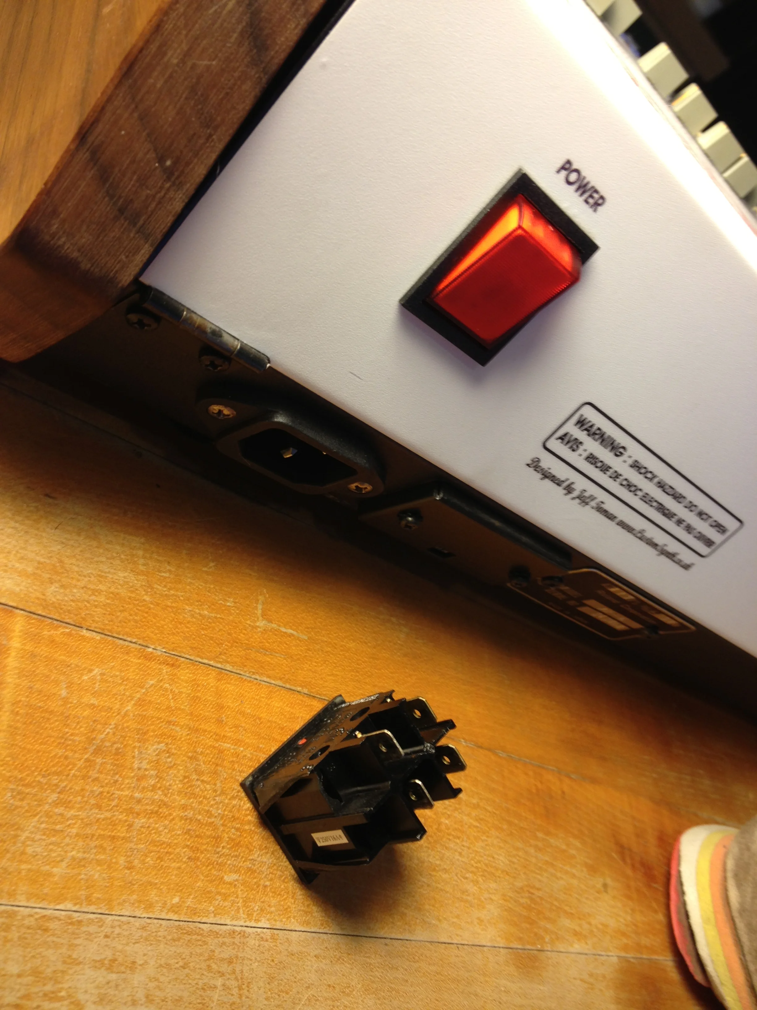The title says it all! So i went to turn the JP6E on the other day and i got nothing. After freaking out and thinking i must be doing something extremely stupid for a few minutes, i decided to get out the volt meter. To my surprize, the power switch on the JP6E was not working. How often does that happen>? Well, At least they are findable on the web thanks to Doug @ Synthparts! And this synth is so well designed you don't even need to heat up the soldering gun to do this work!